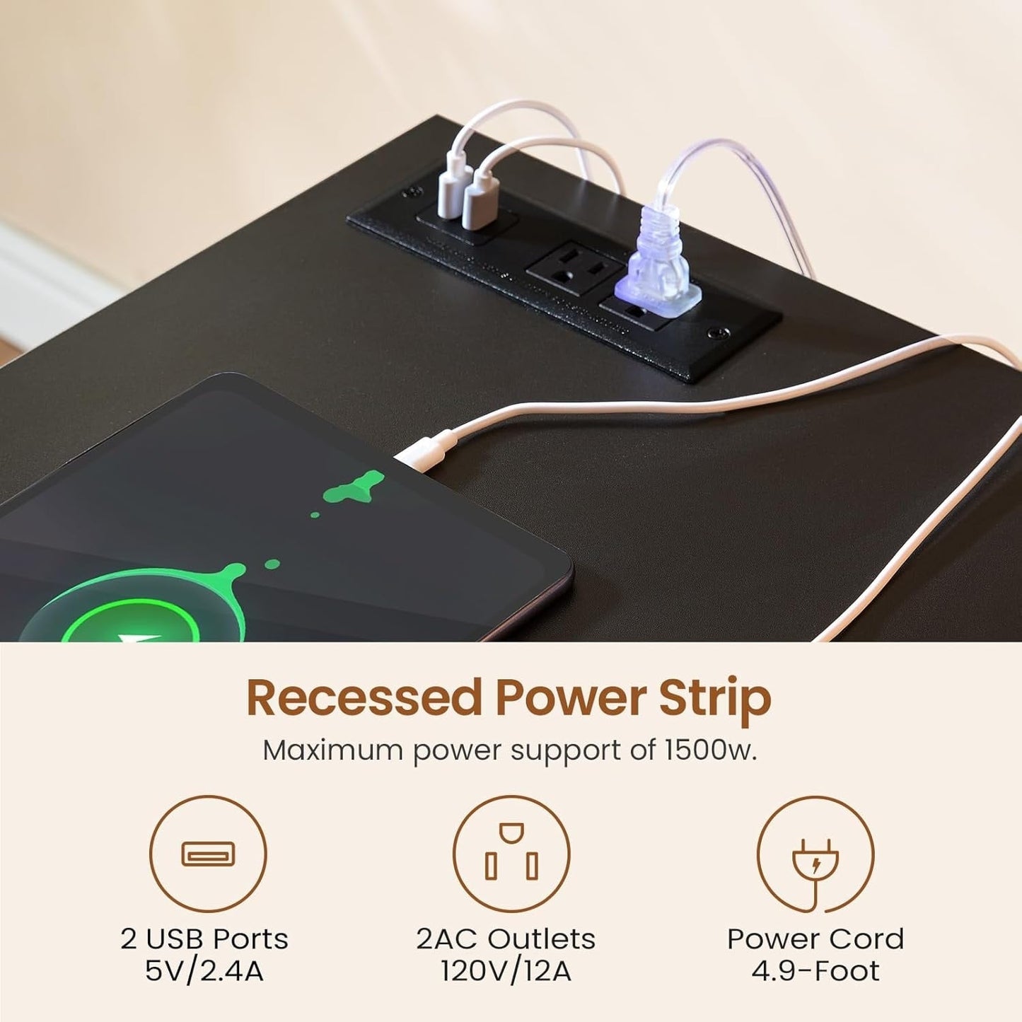 • 【Power Outlets】This computer desk is equipped with 4 AC outlets, 2 USB charging ports to provides convenience for charging your gaming gear, tablet, printer or phone. The switch is convenient and safe to turn off power, no need to unplug appliances at all times.