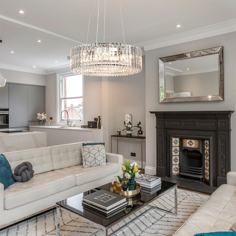 Lustre rond moderne en cristal OYIPRO 6/8/12 lumières en forme de tambour pour îlot de cuisine