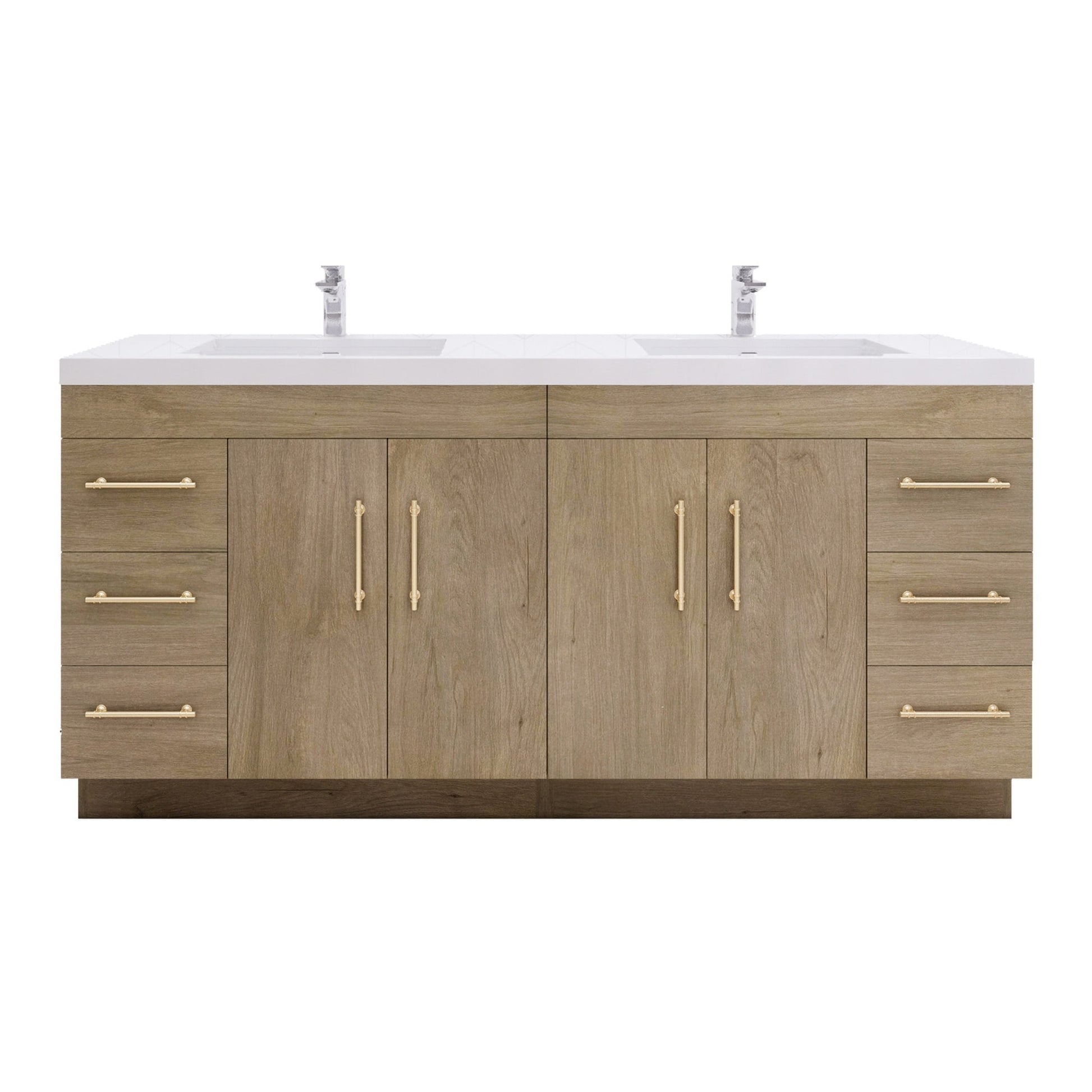 Introducing the Eliza 72'' Freestanding Vanity with Double Sink - a striking combination of modern design and top-quality materials. The sleek handle detail and high gloss veneer lend an air of sophistication to any bathroom, while the robust acrylic countertop promises easy maintenance and long-lasting durability. The Eliza features premium European soft-closing hardware that ensures a luxurious experience every time.