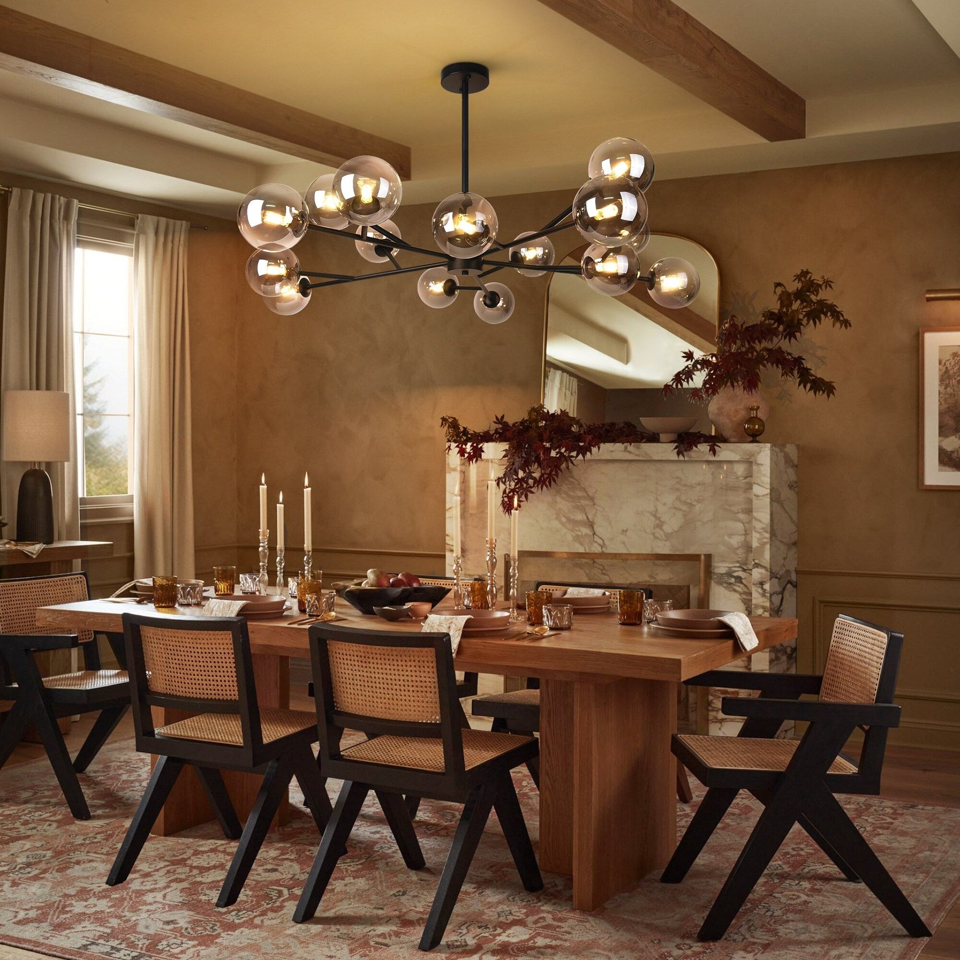15-Light Modern Linear Sputnik Kitchen Island Light Branch Cluster Glass Globe Bubble Chandelier