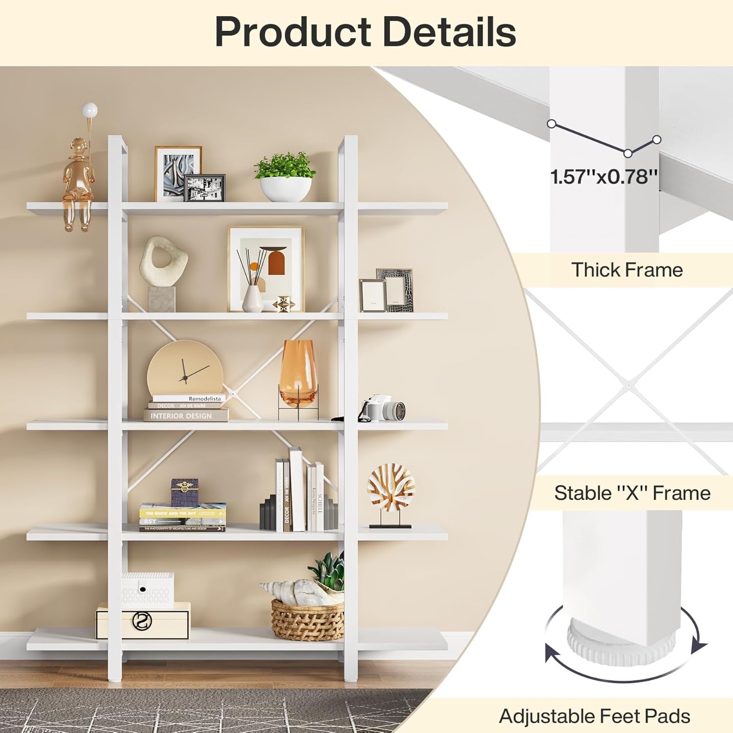 Organize your books and display your favorite decor with this 5-Tier Bookshelf in vintage industrial style. Standing at 72' high x 12' wide x 47' long, this bookcase provides extra large space to accommodate all your storage and display needs. The solid steel tube support metal and E1 class engineered wood make it reliable and durable for the long haul.