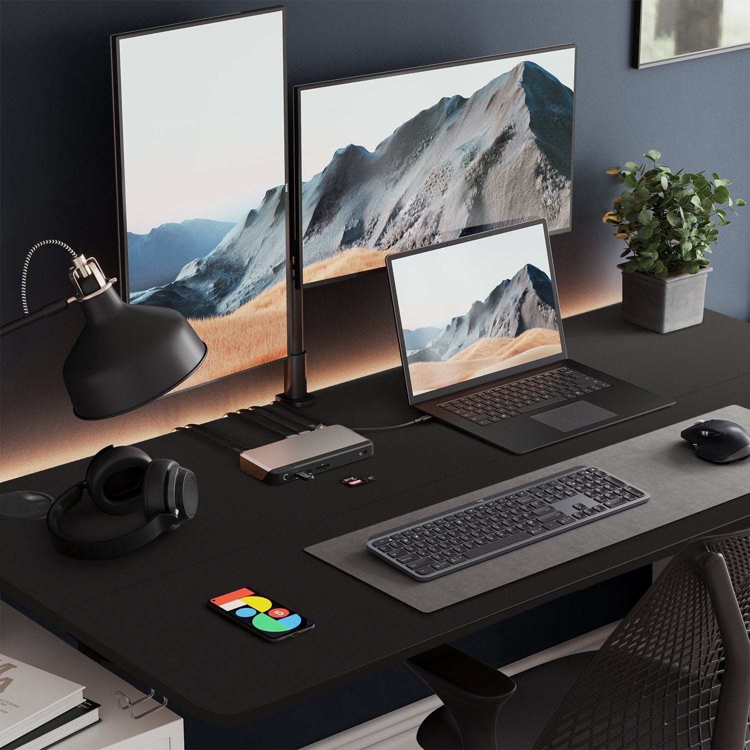 - Industrial-grade steel frame and solid desktop supports up to 176 lbs