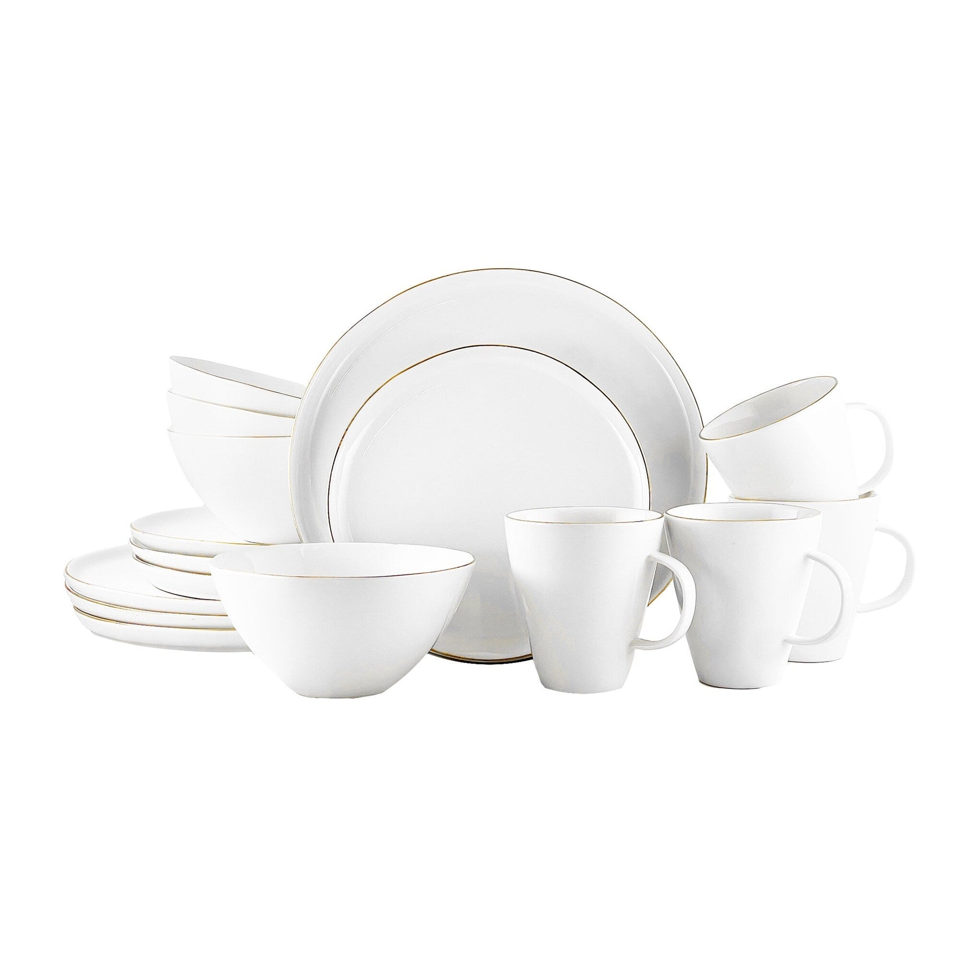 - This set includes 4 large plates, 4 medium plates, 4 medium bowls, and 4 mugs.