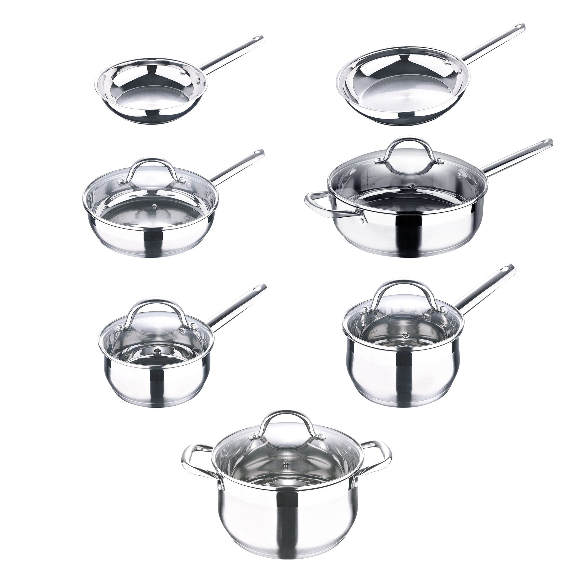 Give your kitchen collection an upgrade with the Gourmet 12-piece stainless steel cookware set. This 12-piece set features all the essential cookware vessels to meet the demands of passionate home cooks. Heat and moisture are perfectly circulated throughout the vessels thanks to the belly-shape design, ensuring optimum cooking results for any recipe at hand. The Gourmet 12-piece cookware set includes an 8-inch fry pan, 10-inch fry pan, 12-inch fry pan with lid, 2.5-quart sauté pan with lid, 1.3-quart saucepan with lid, 2-quart saucepan with lid, and 5-quart Dutch oven with lid.