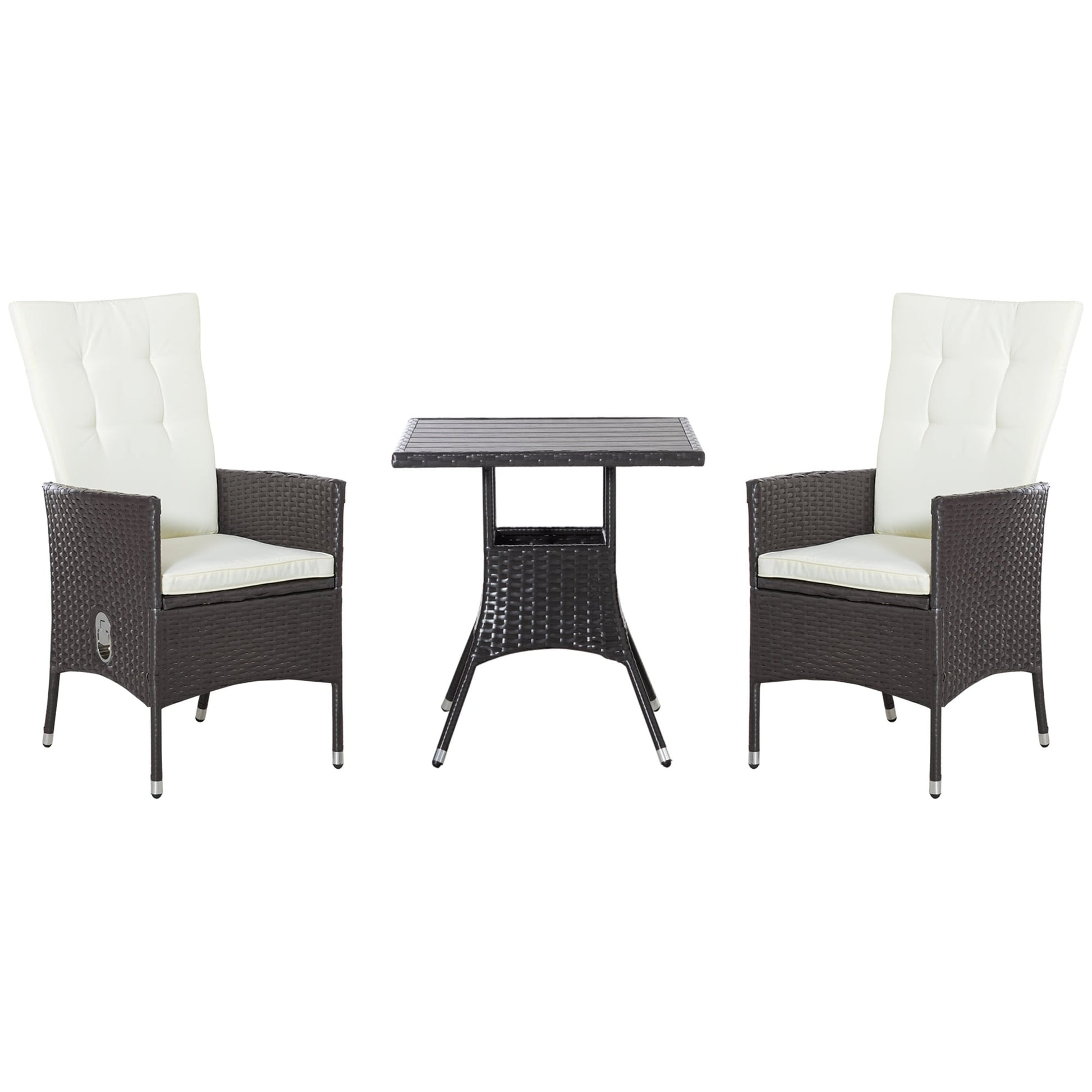 - Our three-piece patio bistro set includes two outdoor reclining chairs and a matching coffee table