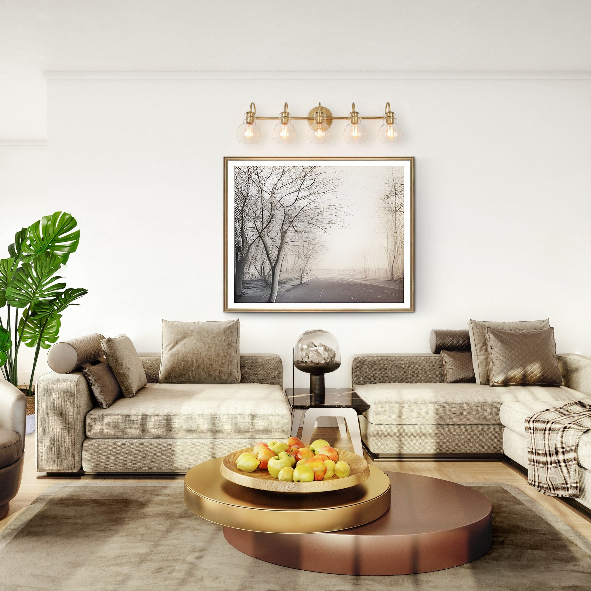 Add a touch of modern farmhouse character to your bathroom with this thoughtfully designed vanity light. Available in hand-painted black or gold finishes, it features a round backplate and a simple crossbar supporting three or five arched, hurricane-style glass shades. The result is a clean yet charming silhouette that suits a variety of interiors. Easy to install and compatible with dimmer switches, this fixture also comes with a 2-year warranty—offering both style and peace of mind.