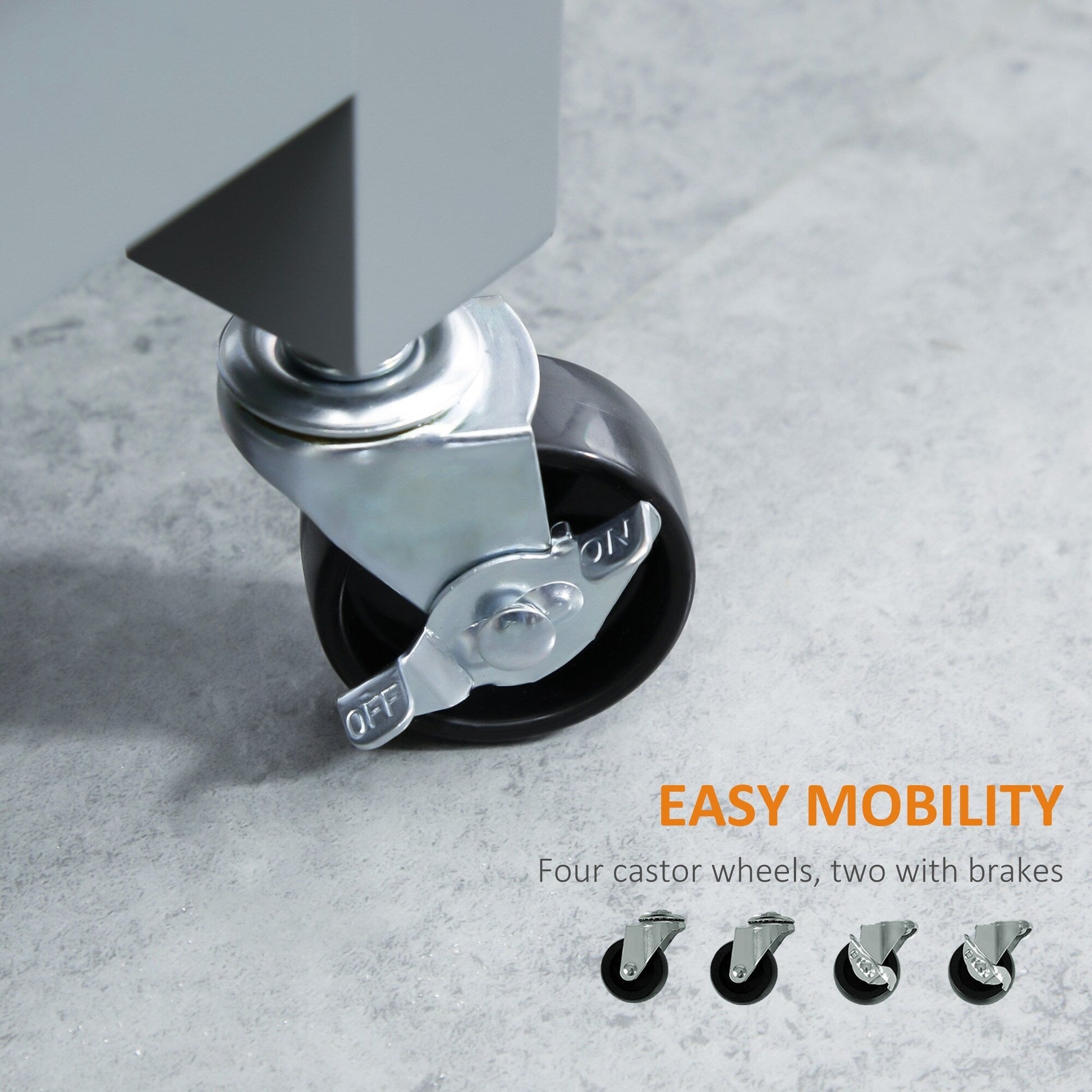 This HOMCOM kitchen storage cabinet is what you need if you have limited space in your home and not even storage. If you like hosting parties, load up this kitchen cart with everything your guests need and you can roll it around from person to person or lock two of the wheels to keep it in one spot all night. Stop running back and forth to the kitchen or elevate your current storage with this rolling kitchen island from HOMCOM.