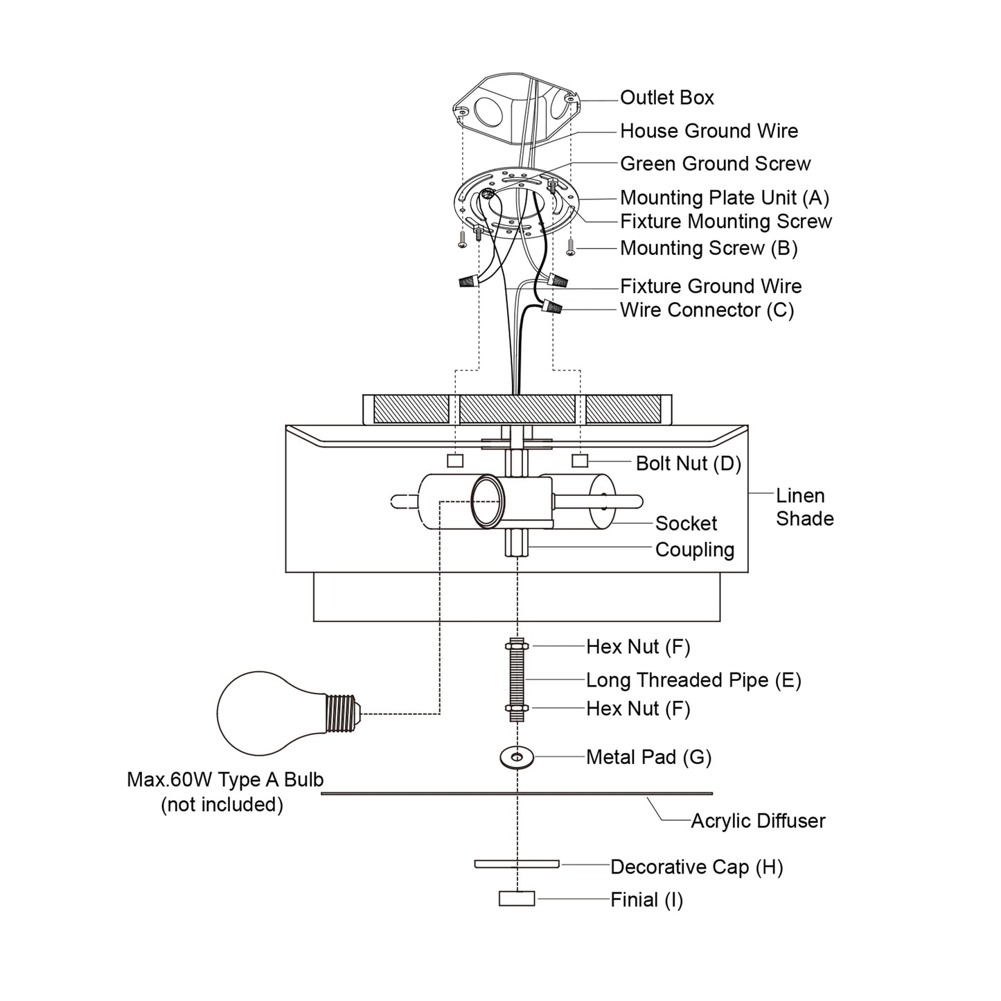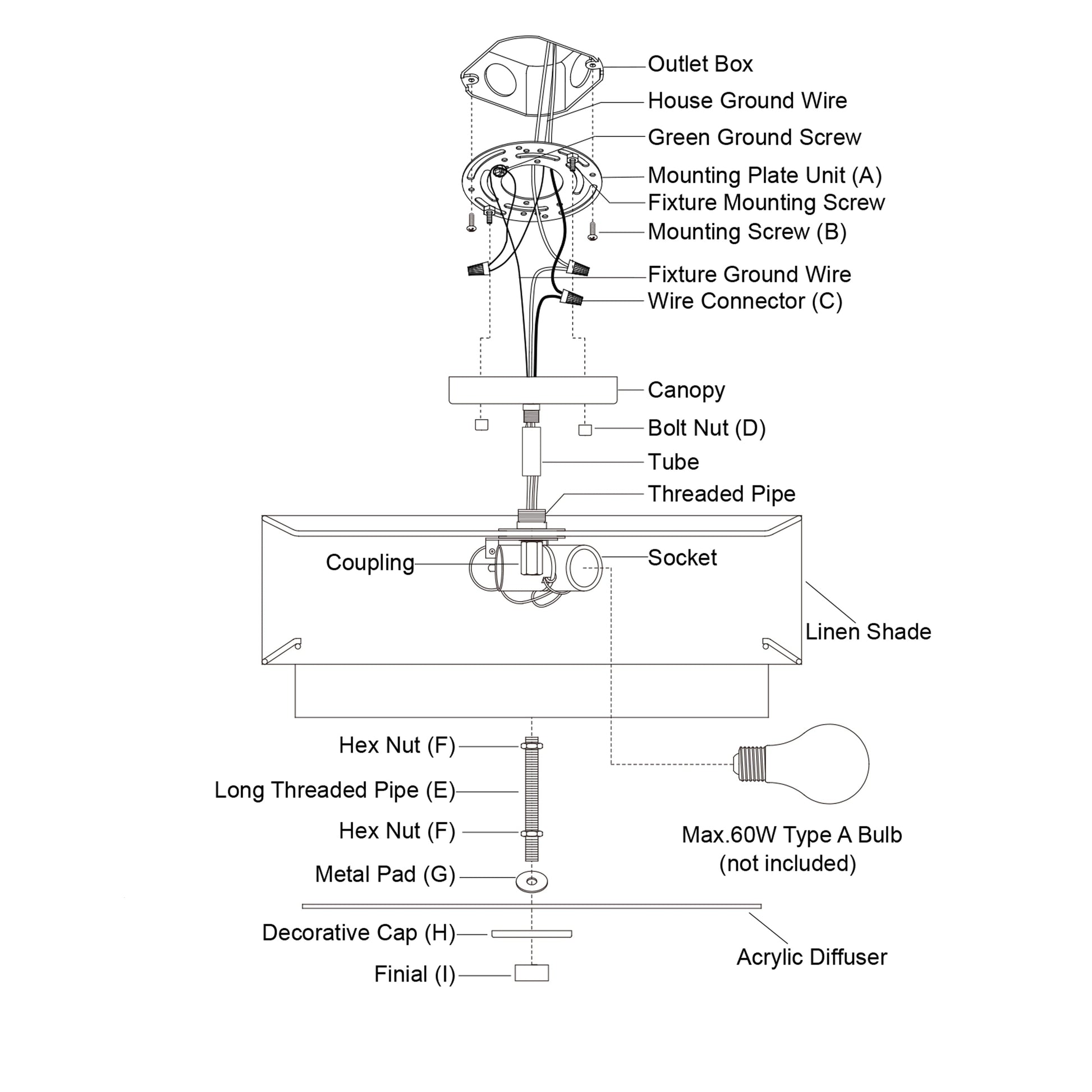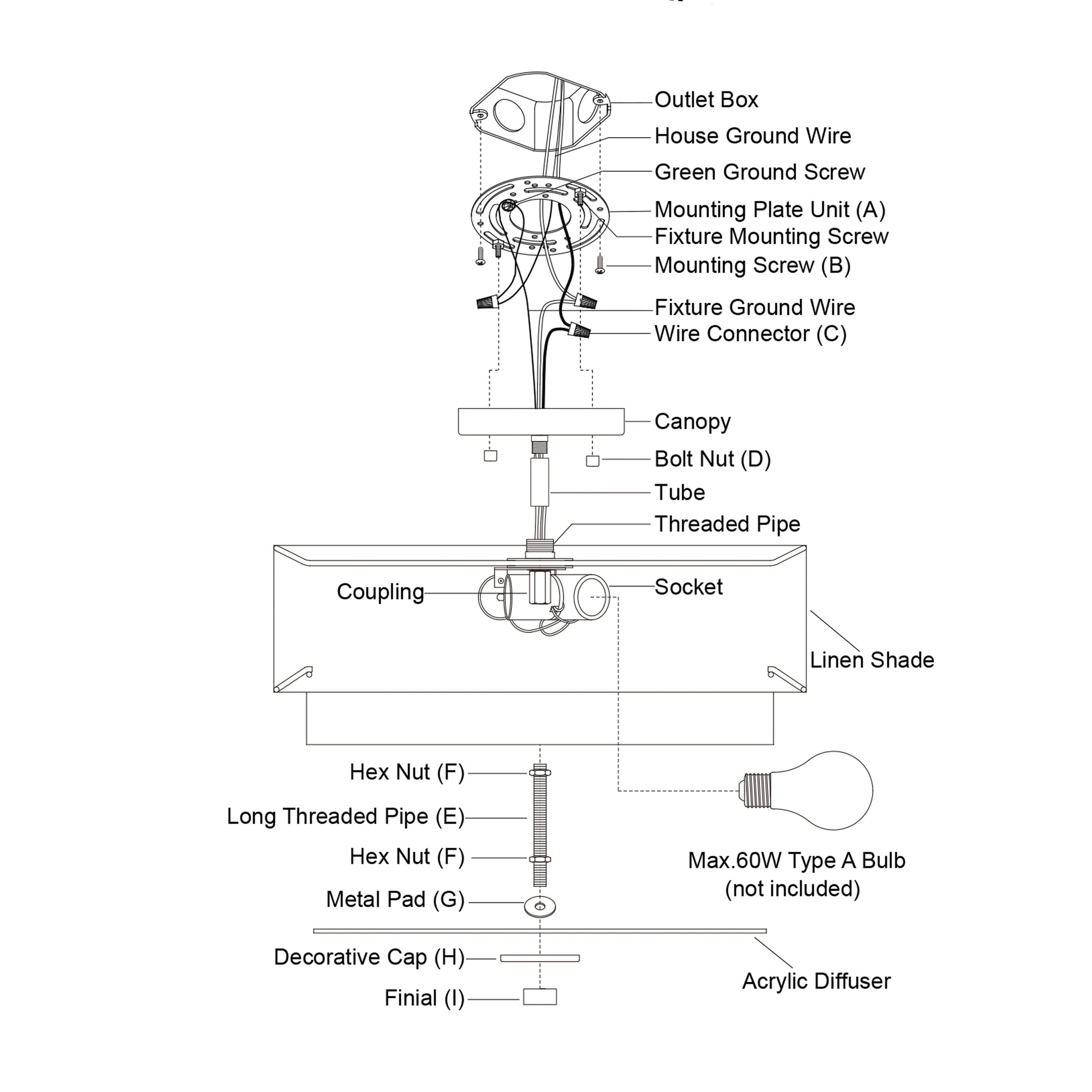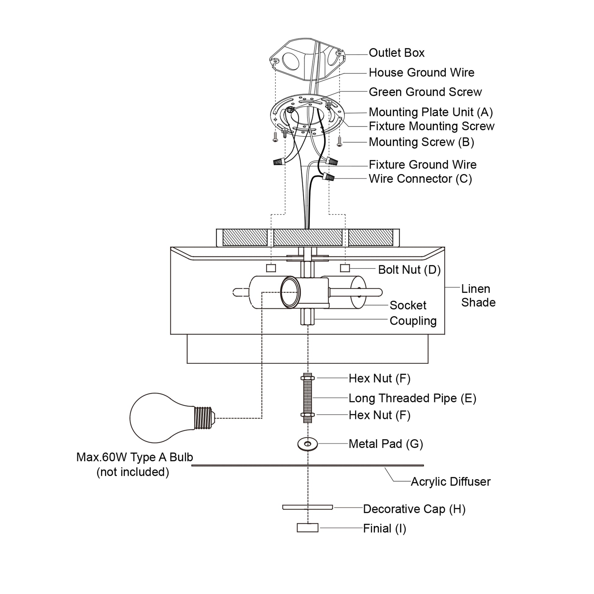 • Uses 60 watt E26 medium base bulbs (not included); LED compatible