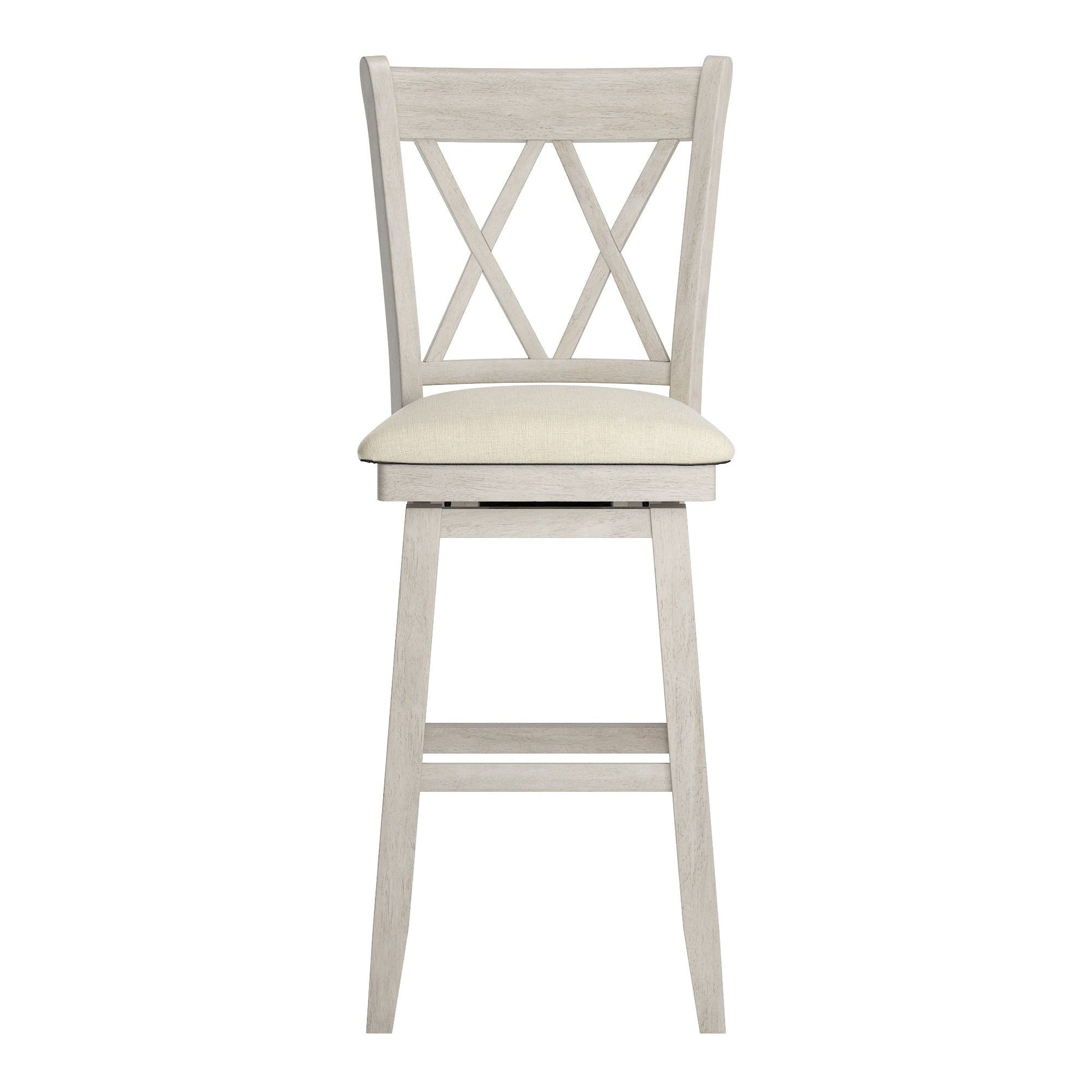 Bring vintage charm and comfortable seating to your bar or counter with the Eleanor Double X Back Wood Swivel Bar Stool by iNSPIRE Q Classic. The double X back design exudes elegance while the upholstered linen seat cushion provides added comfort. Enjoy casual dining and easy conversations with its swivel feature. Choose from several distressed finishes to match your unique design taste.