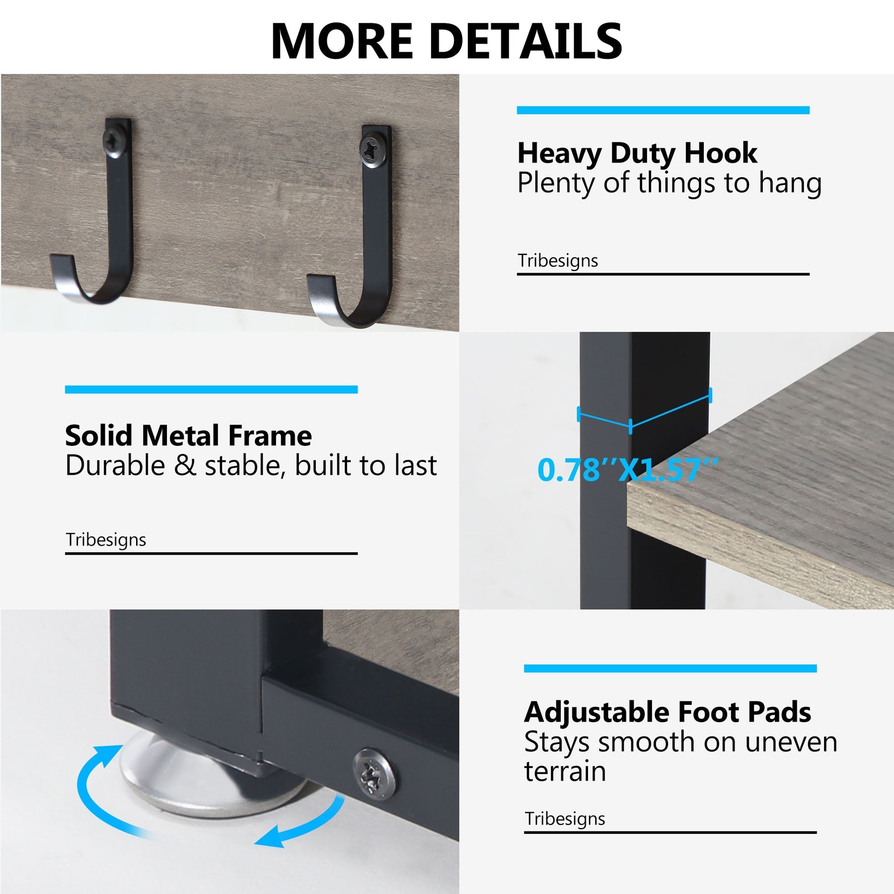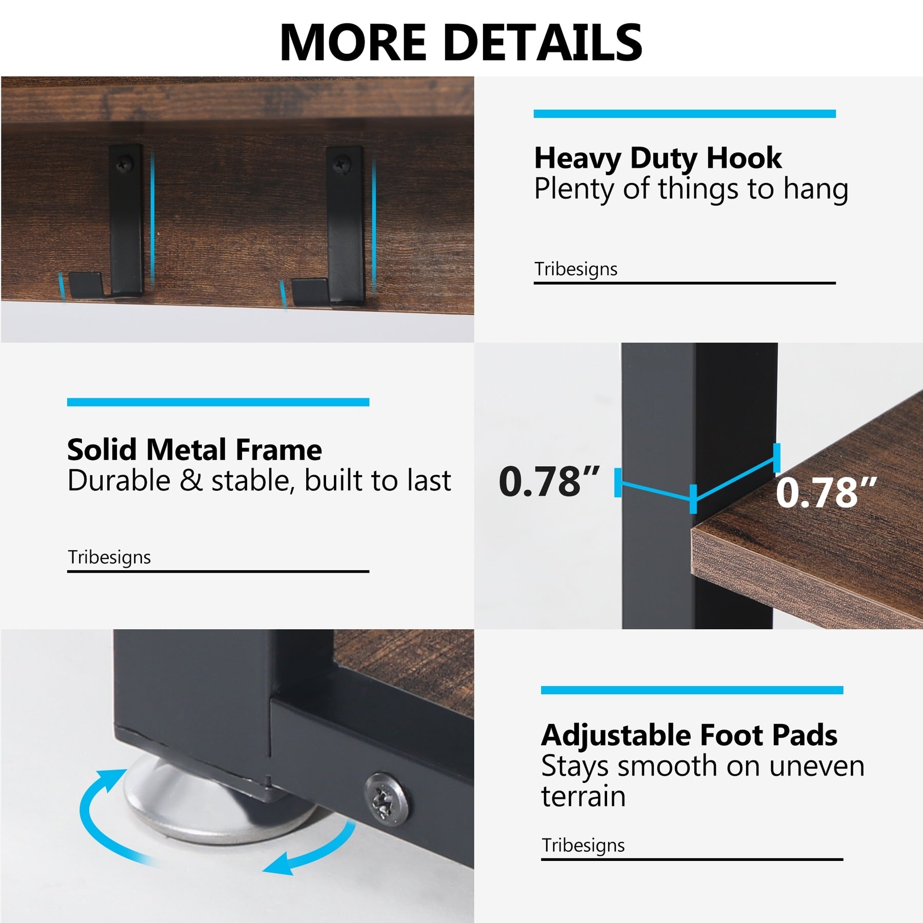 - Bench legs made from solid metal (0.78' by 1.57' width)