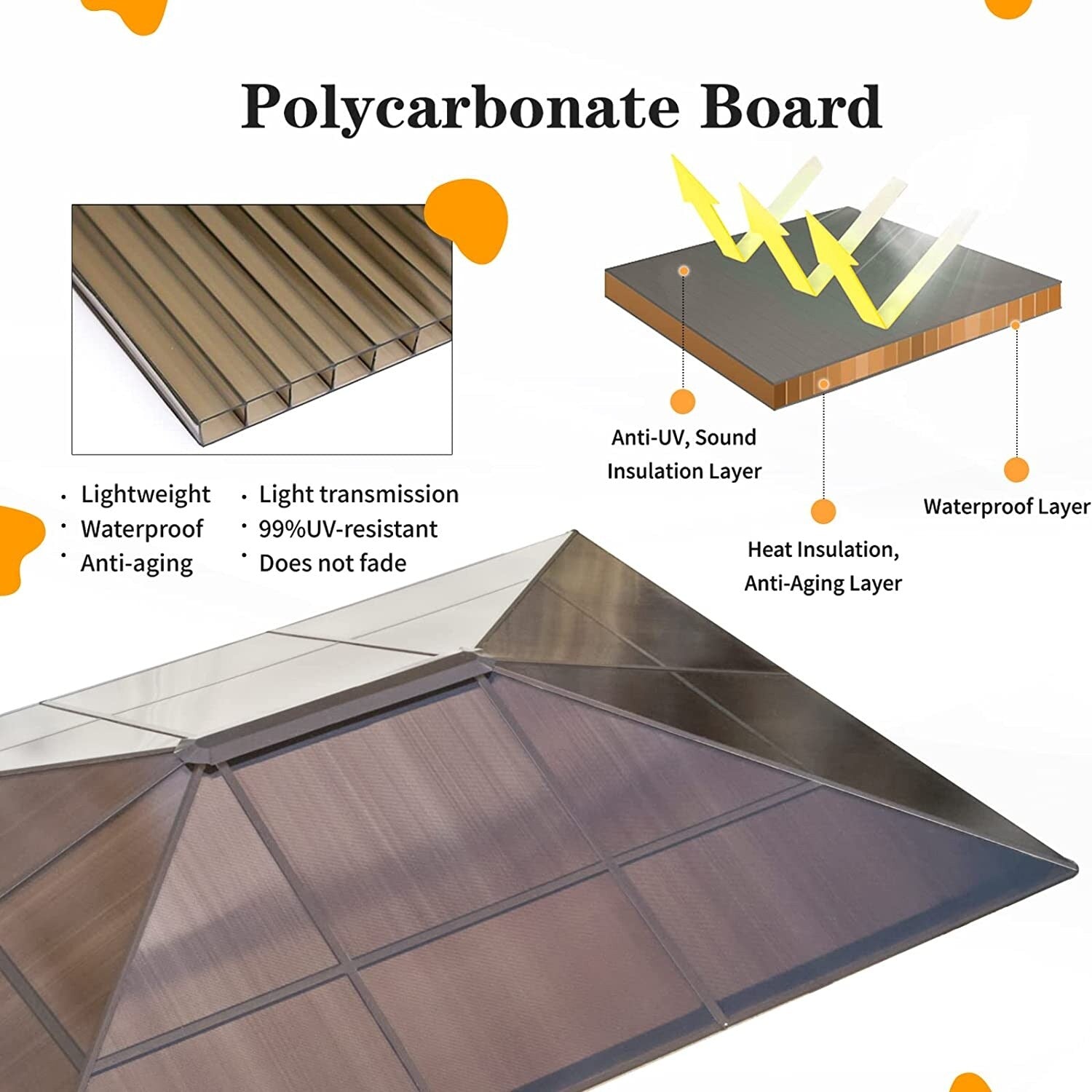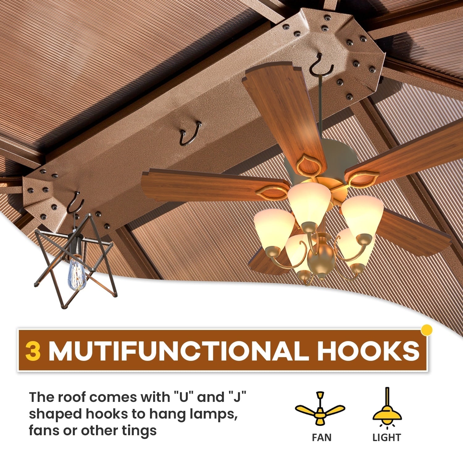 EROMMY Hardtop Gazebo,Outdoor Pergola with Double Roof & Netting & Curtains,Heavy Duty Canopy for Patio, Backyard, Pool party