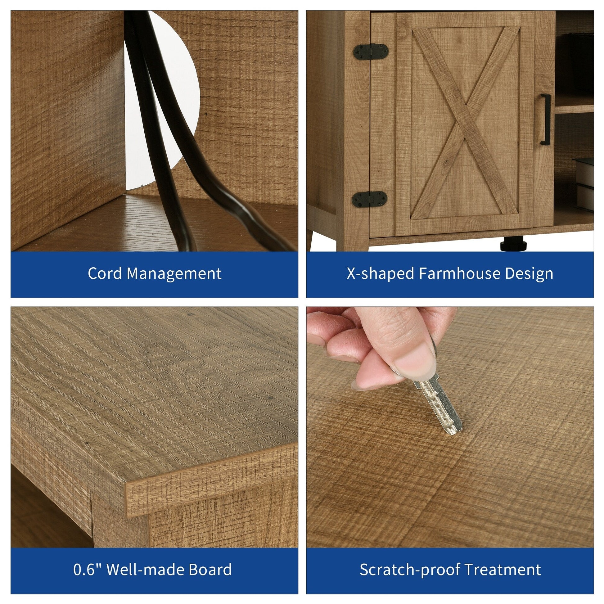 Farmhouse TV Stand for up to 65 TV with Doors and Open Shelves Media Console Power Outlet