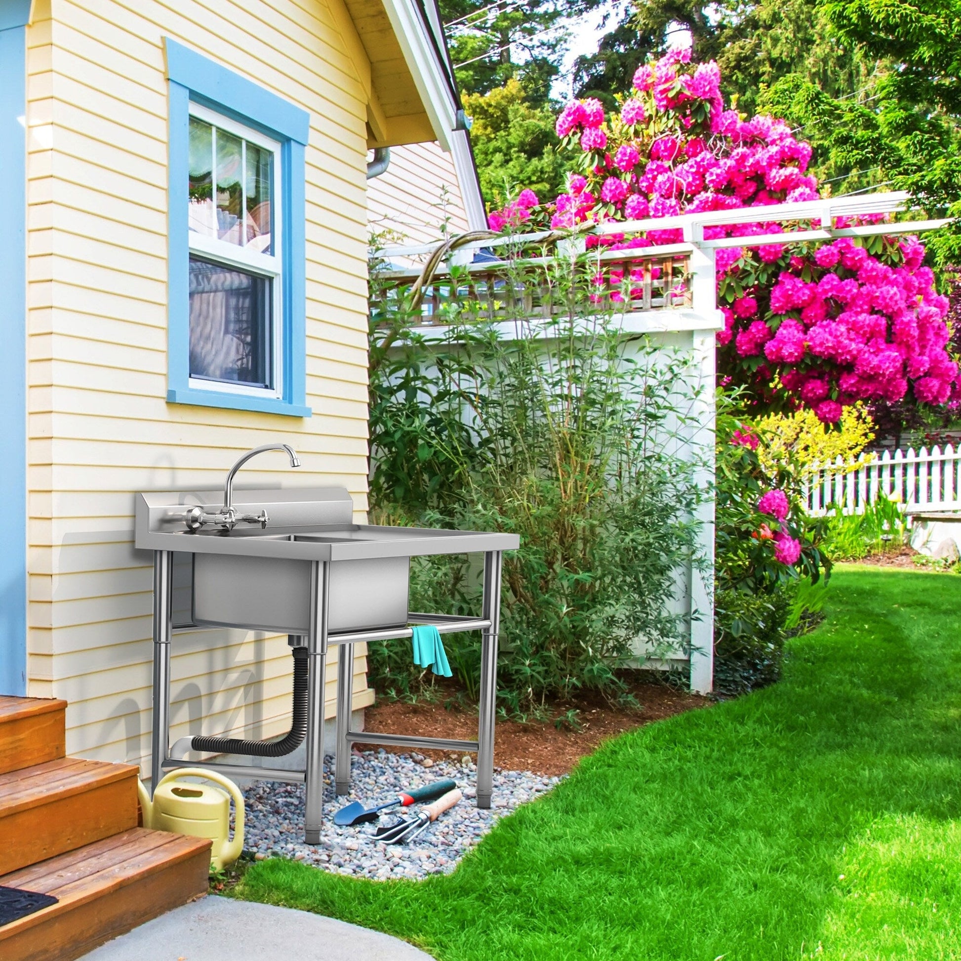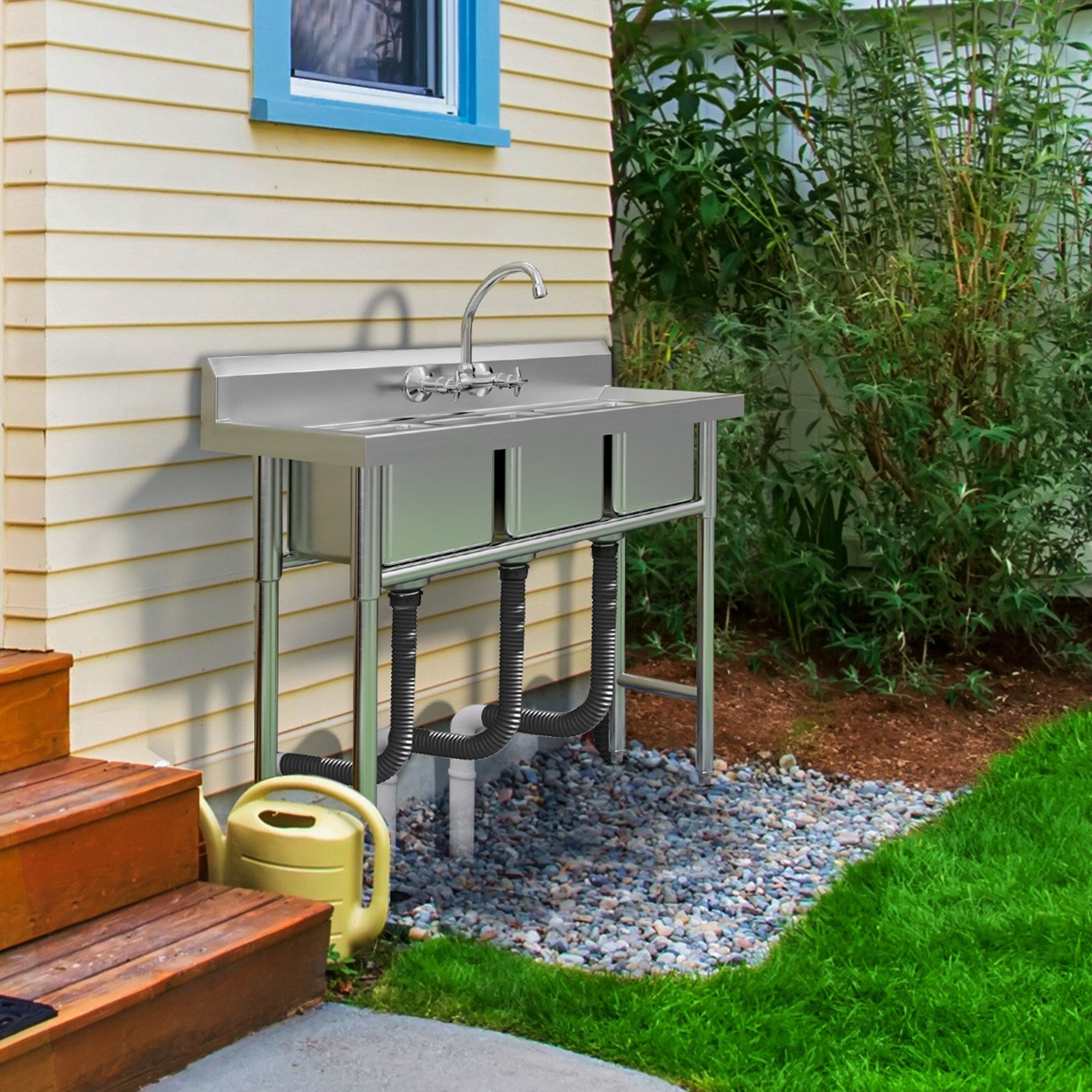 Évier de cuisine à cuve compartimentée en acier inoxydable, évier commercial autoportant