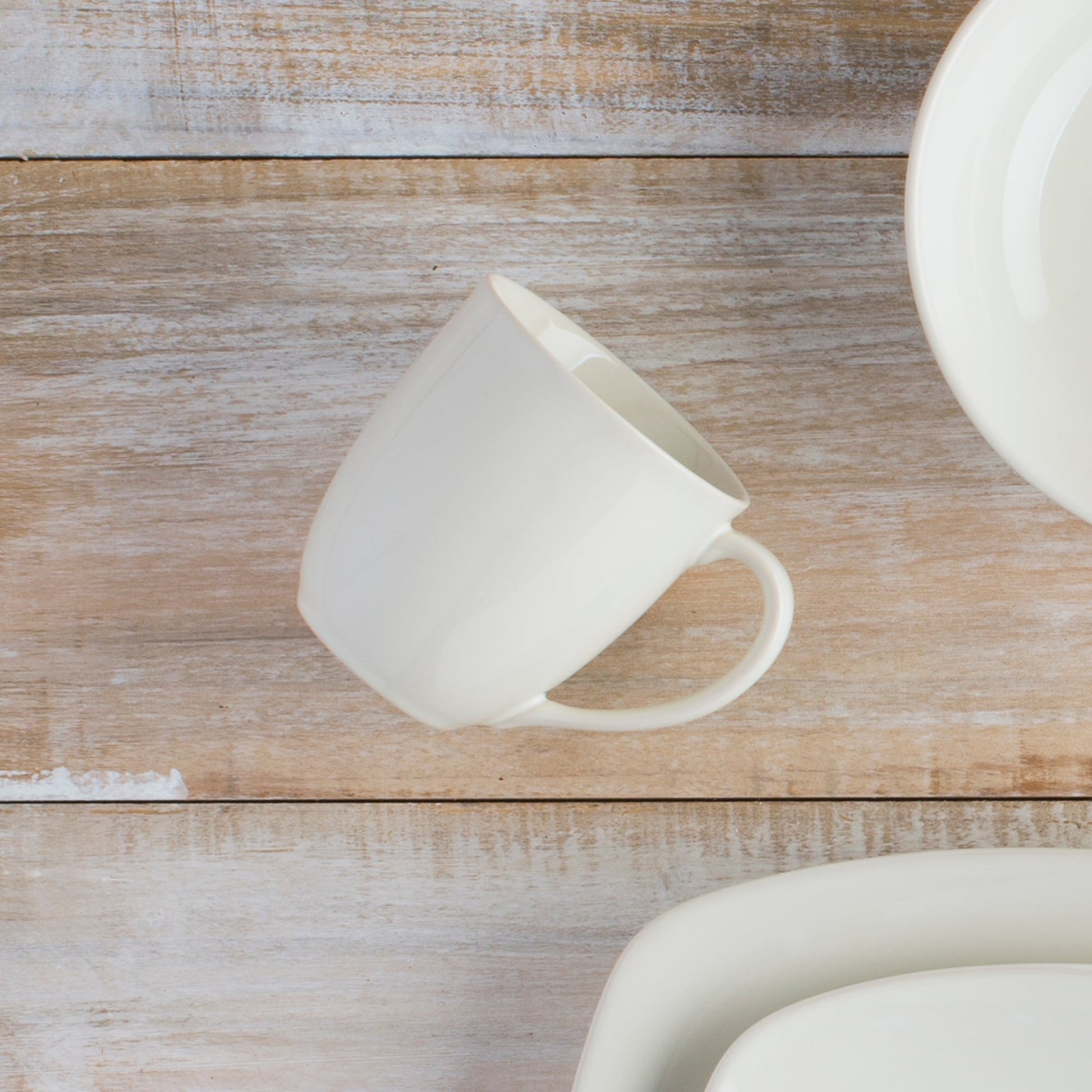- Set includes 4 dinner plates, salad plates, cereal bowls, mugs
