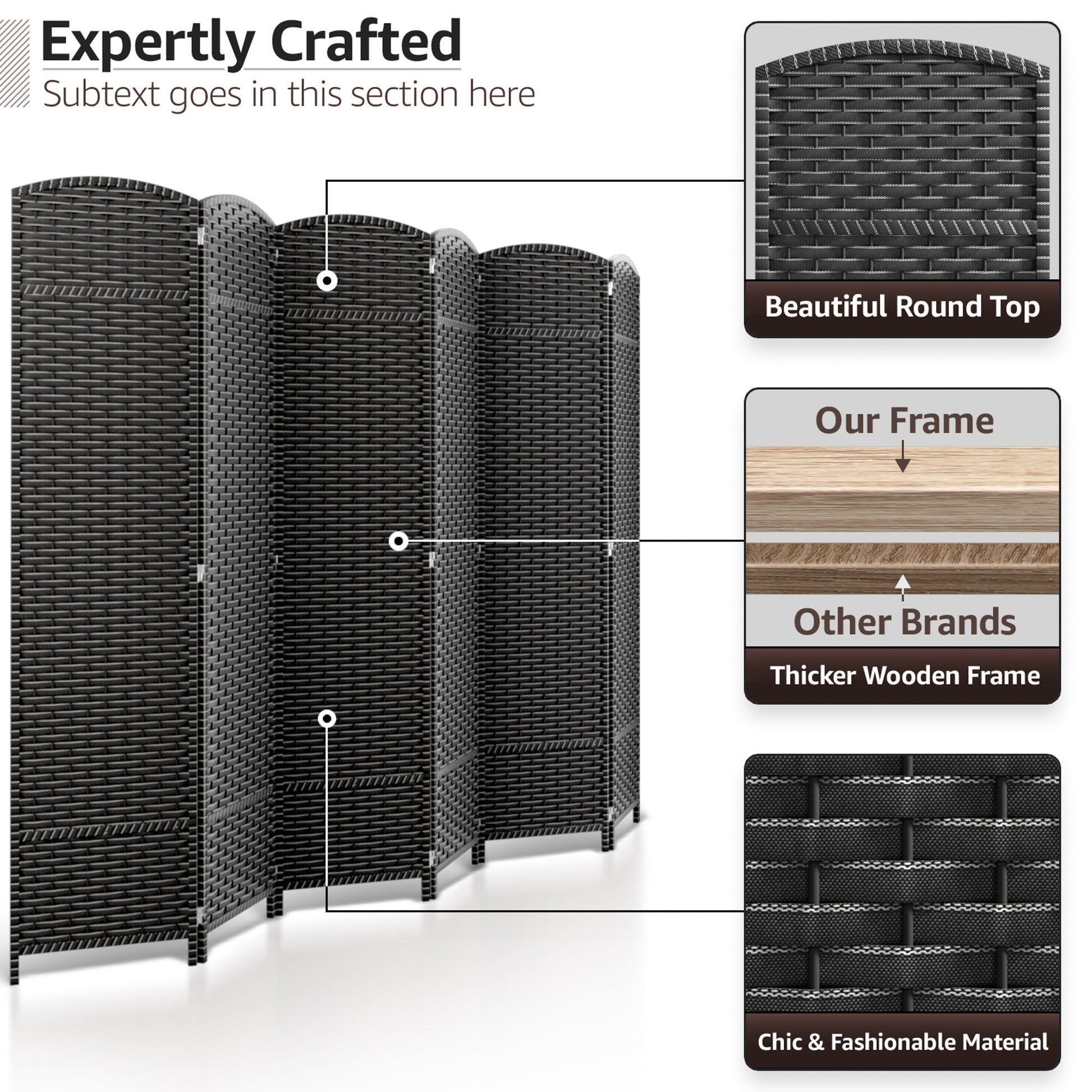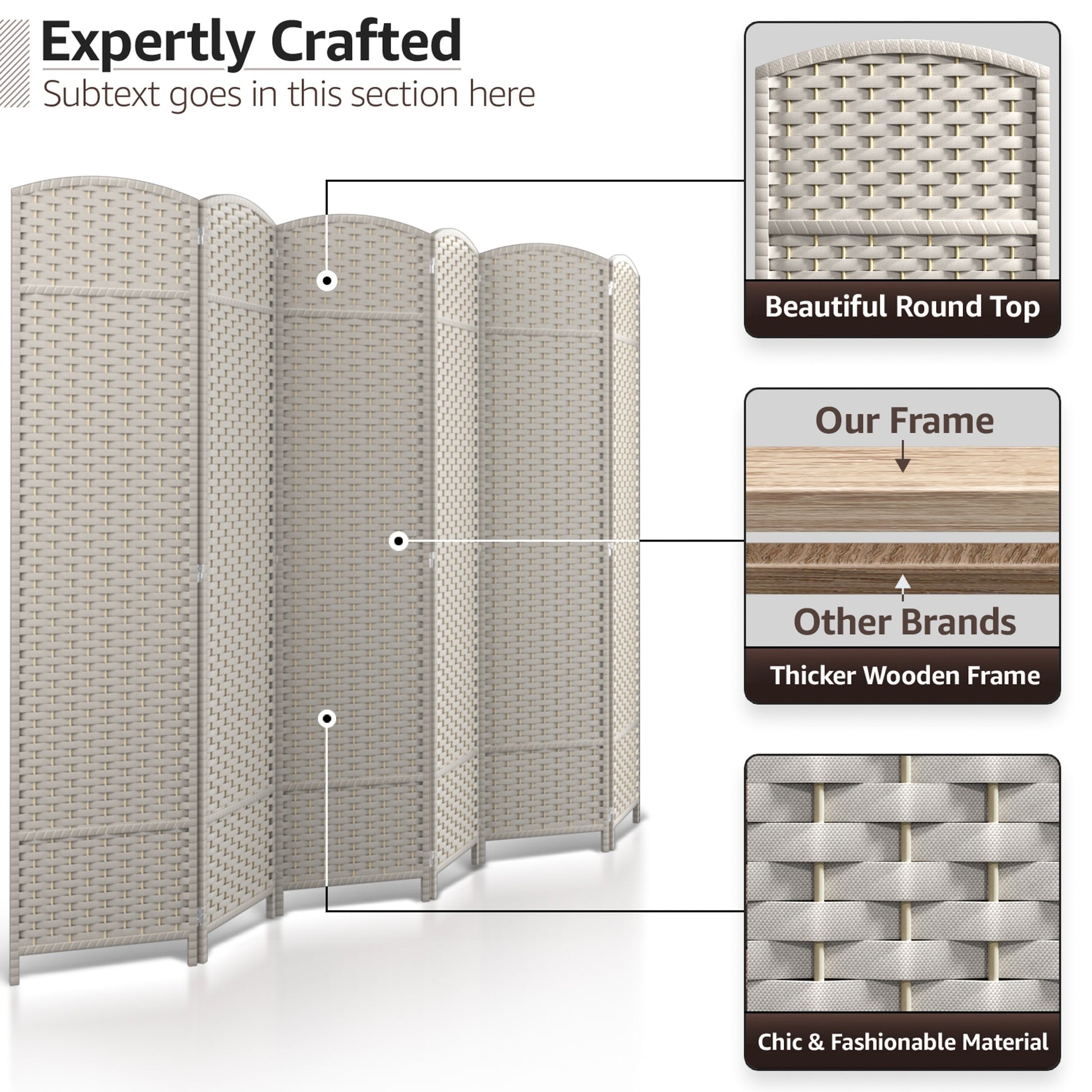 - Extra Wide Double Hinged Panels: Equipped with 6 double hinged panels and measuring 6 ft. tall, this room divider is extra wide for maximum coverage.