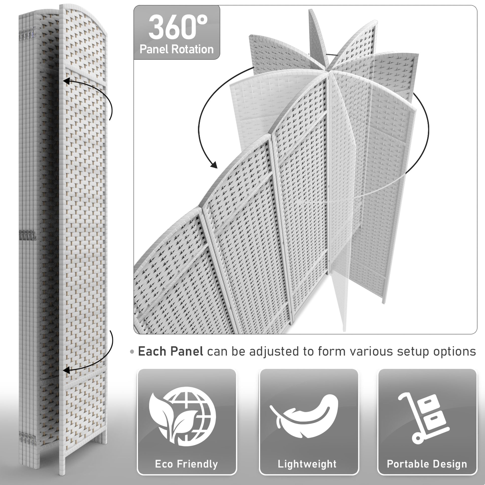 Sorbus 6 Panel Room Divider Tall Privacy Partition Screen Extra Wide Double Hinged Mesh Hand-Woven Folding Wall Divider - 6ft