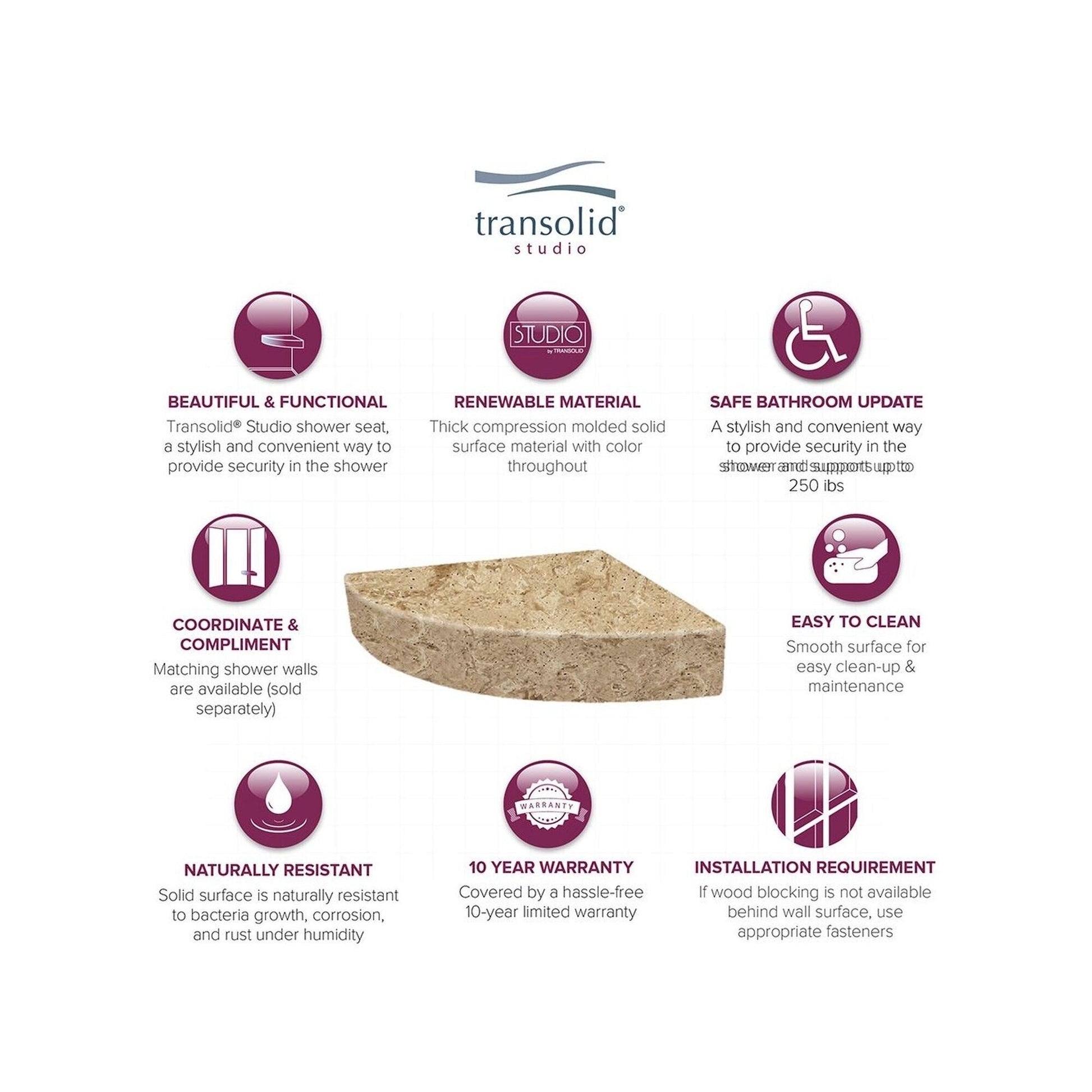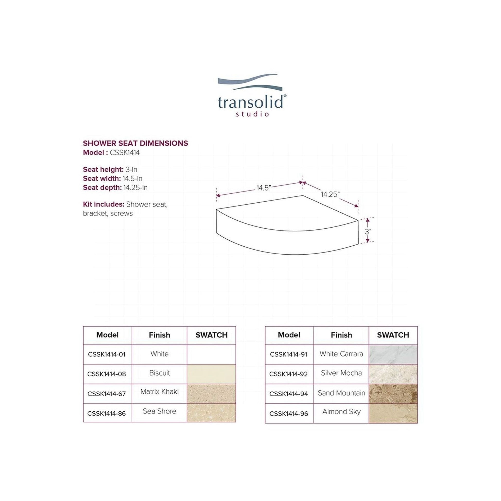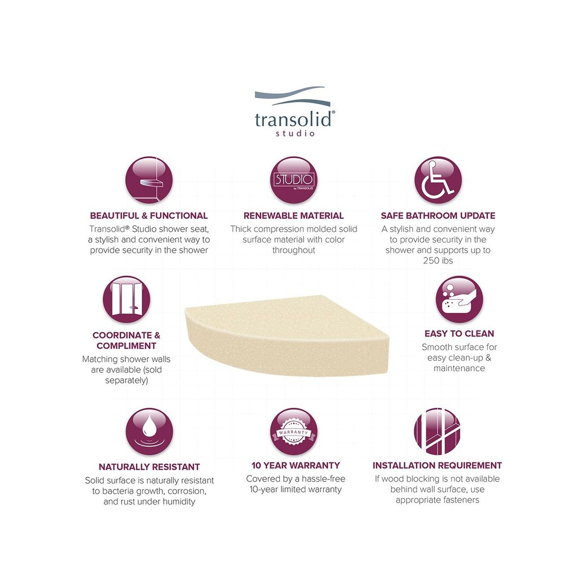 Transolid Studio 14-In X 14-In Solid Surface Wall-Mount Corner Shower Seat - 14.5 x 14.25 x 3