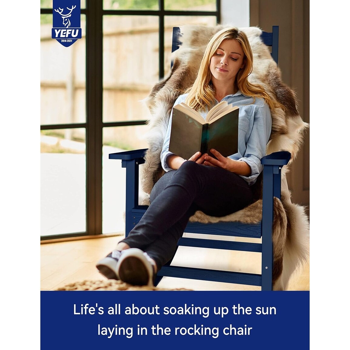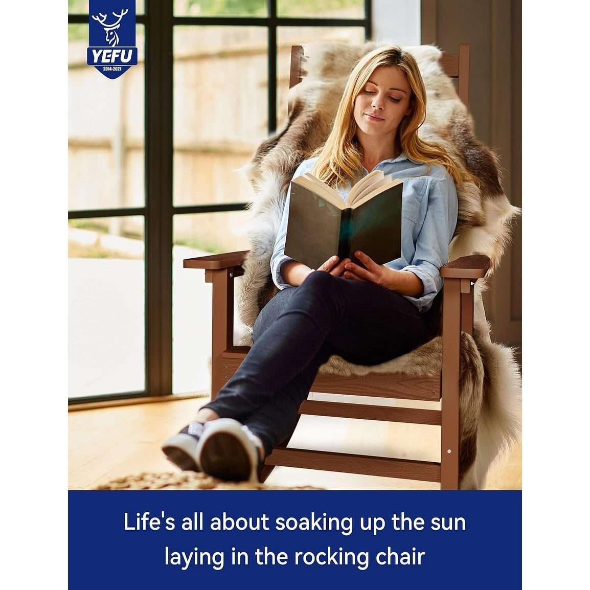 Bring style and durability to your indoor/outdoor space with the WINSOON All Weather HIPS Outdoor Rocking Chair. This chair is made of HIPS, a sturdy and water/UV/weather-resistant material that won't fade, crack, warp, peel, or rot. The wood grain appearance adds a classic touch without the maintenance of real wood. This chair is equipped with a high backrest and wide armrests, providing maximum comfort and stability. It has passed 120000 tests and is suitable for year-round use. Assembling the chair is easy and comes with all stainless tools included. It also comes with a 3-year warranty.
