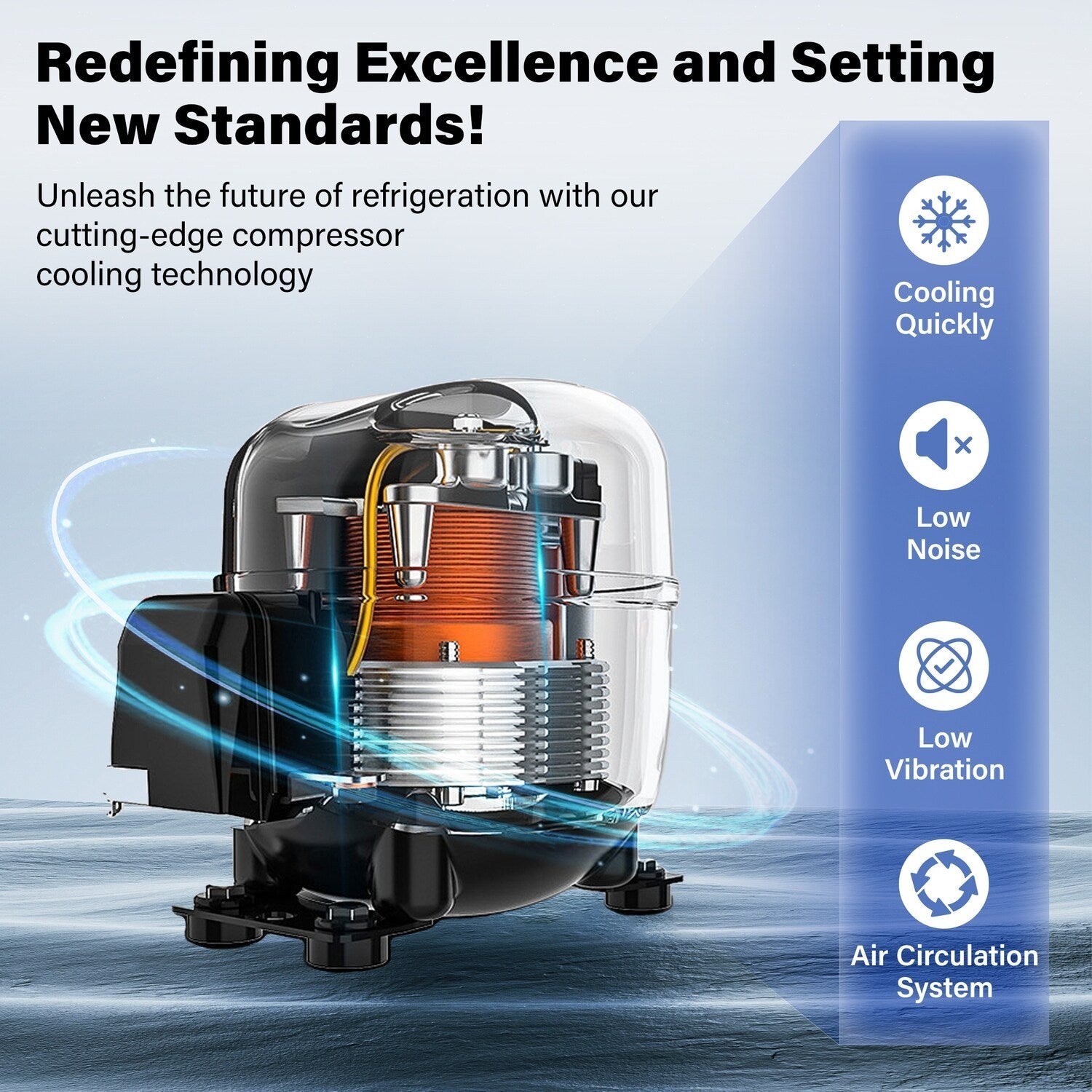 - Rapid and Eco-Friendly Cooling: Featuring advanced R600a refrigerant, this beverage refrigerator cools quickly and evenly within just 40 minutes. The eco-friendly cooling system is DOE-certified for energy efficiency, reducing your energy consumption and environmental impact while delivering powerful cooling performance.